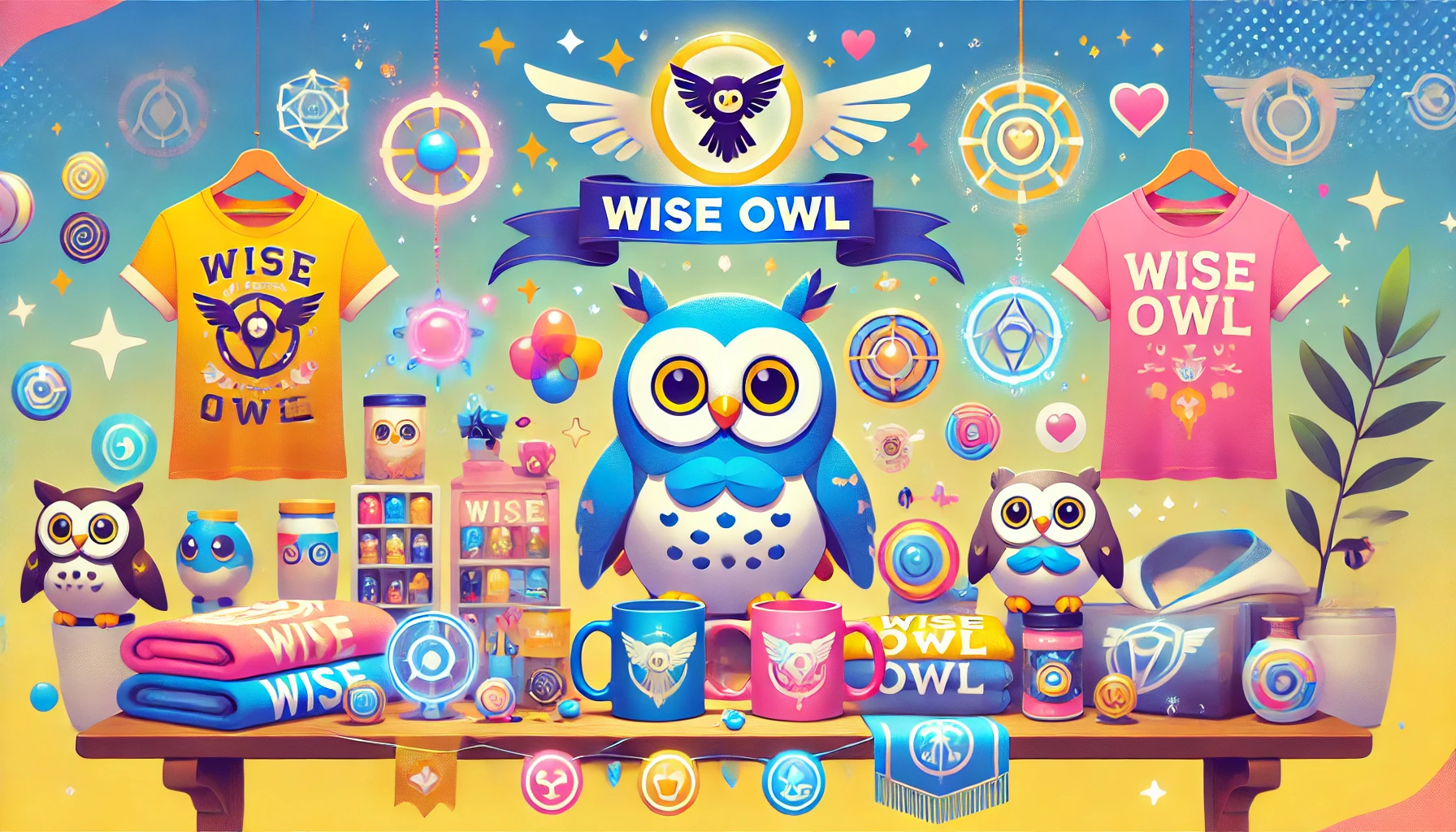 Release a range of Wise Owl-themed merchandise, including plush toys, apparel, mugs, posters, and accessories, featuring faction logos and characters.